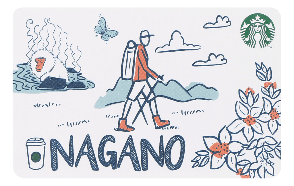 世界各地のスターバックスで展開されている「Been There Series」のNAGANOデザインです。雄大な自然と澄んだ空気感をイメージしてデザインされています。満点の星空、スキージャンプ、高原、瑞々しいりんごとりんごの花、そばの花など、長野らしいモチーフをたくさん散りばめています。キーカラーは美しい自然と夜空をイメージした濃淡2色の青です。