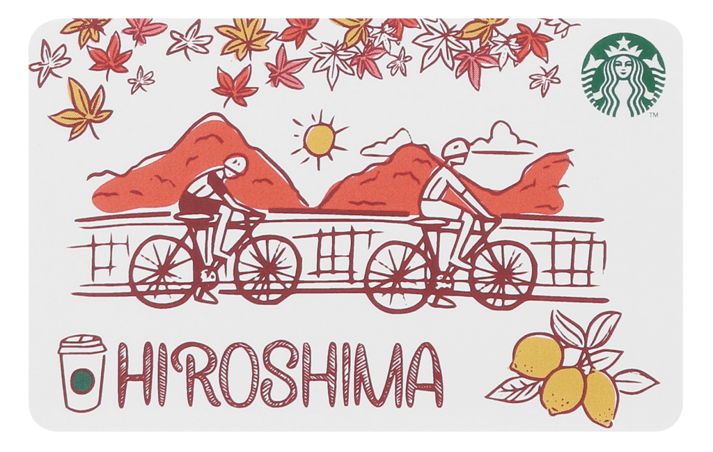世界各地のスターバックスで展開されている「Been There Series」のHIROSHIMAデザインです。広島県の代名詞でもあるもみじをメインに、様々な風景をイメージしてデザインされています。色づいたもみじやもみじ饅頭、お好み焼き、レモン、オレンジ、牡蠣など、広島らしいモチーフをたくさん散りばめています。キーカラーは情熱的で人情に厚い広島の方々をイメージした赤とピンクです。