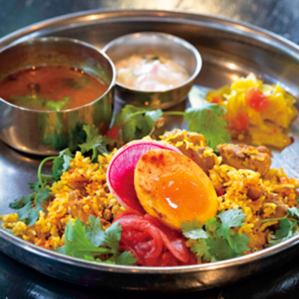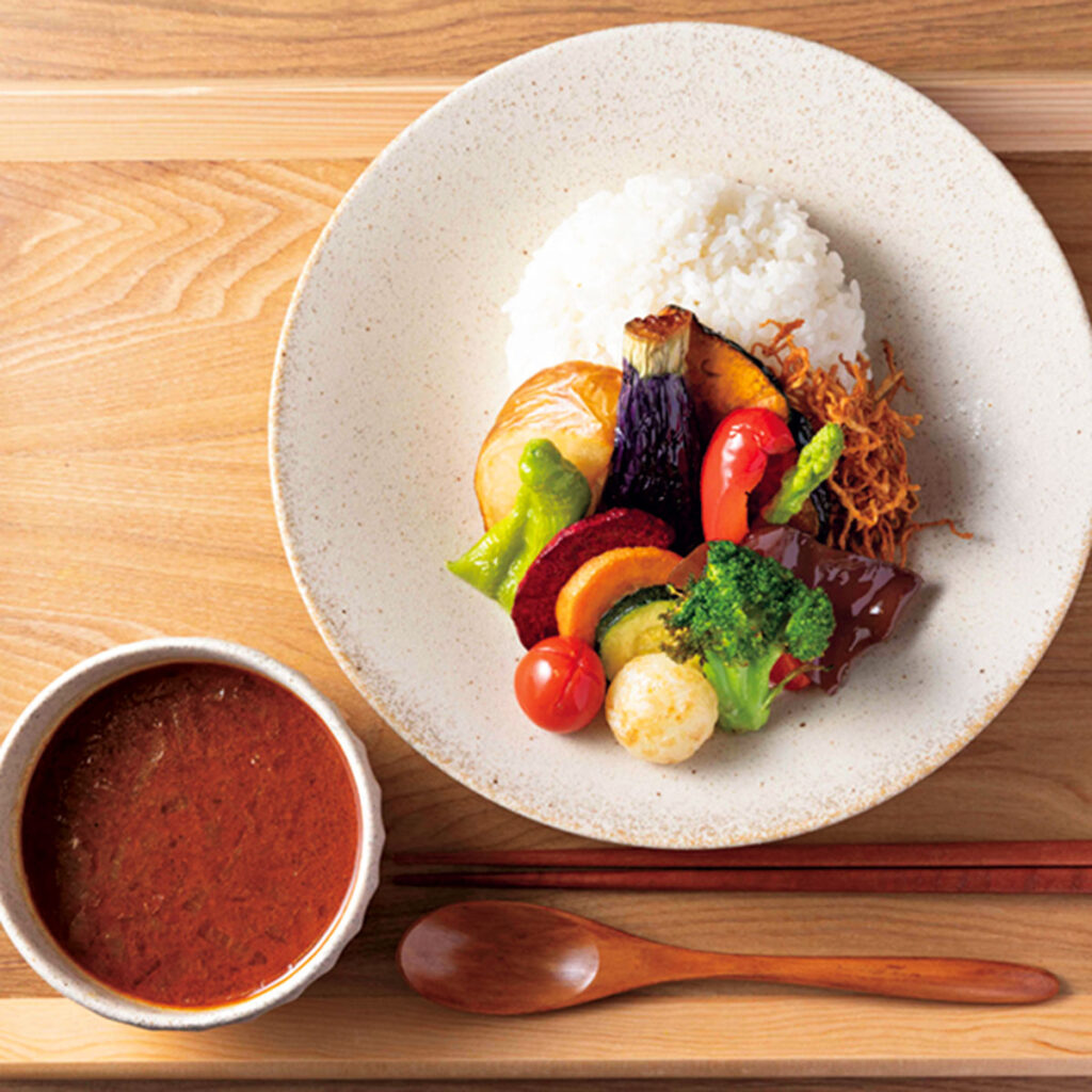 好きなカレーが選べるワンプレート定食のターリー、チキンをふっくら炊き込んだビリヤニといった本格的なメニューをメインに、塩麹や甘酒などの和素材、みずみずしい季節野菜を取り入れたオリジナリティあふれる味わいが楽しめるカフェレストラン。スパイスが香るぬか漬けやポテサラ、小籠包のようなジョージア料理「ヒンカリ」といったジャンルレスな一品料理は前菜としてナチュラルワインやクラフトビールとも相性抜群です。キャロットケーキをはじめとするスイーツも人気が高く、チャイと一緒にゆったりとティータイムを過ごしても。