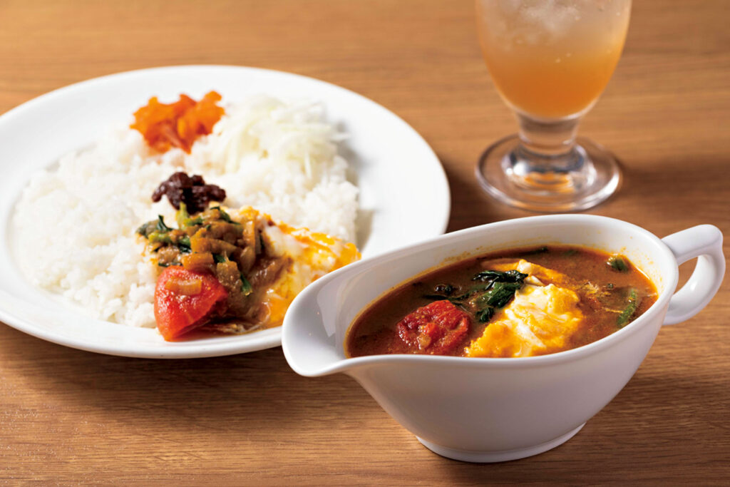 西早稲田で1975年に創業して以来、38年にわたってカレーマニアを虜にしてきた名店が今年7月に復活!元祖夢民の味を変えずに、当時のレシピを守っているルゥは、オリジナルブレンドのスパイスがじんわりと辛いながらも、フレッシュなトマトやふわとろ卵などを合わせることでまろやかな旨みがぐっとアップしています。さらに、素揚げにして甘みを引き出した野菜がたっぷり、彩り豊かなベジタブルカレーも新たにラインナップ。旧店時代のオールドファンから近隣のオフィスワーカーまで、早くもリピーターを生んでいる注目店です。