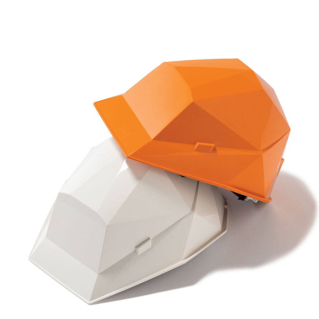 避難時や余震が続く際に、飛来落下物や電気などからも守ってくれる。スタッキングしてコンパクトに収納できるうえ、見た目もスタイリッシュ。国家検定合格品で安全性も保証。カクメットR Aタイプ各¥2,195(ともにイエロー/セイショップ)