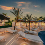 注目したいのは、BPCの顔でもある2つのプール。1つは海を見降ろす全長40mの「BLACK POOL(ブラック プール)」で、その名の通り漆黒のタイルでデザインされています。真っ黒に仕上げることで周りの景色が反射し、風になびくパームツリーや煌めく満天の星空、プールに灯される炎が幻想的に反射します。もう1つの円形に造られた「SIGNATURE POOL(シグネチャー プール)」には、パラソルやプールベッド、ガゼボが配置され、併設のプールサイドバーでドリンクや食事を楽しみながら、ゲスト一人ひとりが思い思いの時間を過ごせます。