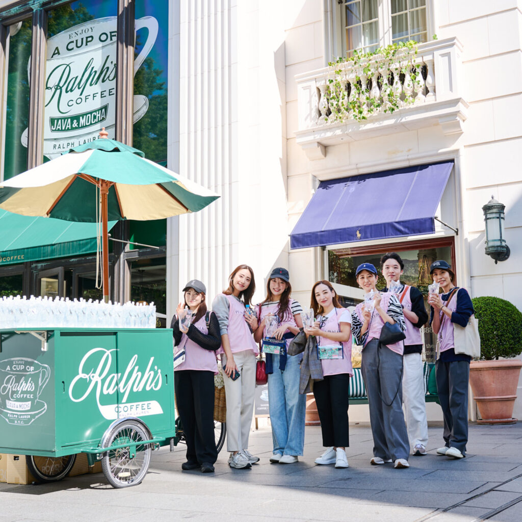 9時より開始されたウォーキングイベントは、東京・明治神宮外苑 にこにこパークを起点にスタート。明治神宮外苑のいちょう並⽊を通り、表参道交差点を抜け、国⽴競技場前と全⻑約4.8㎞のルートです。ラルフ ローレン 表参道に隣接したコーヒーショップ「ラルフズ コーヒー」前には給水スポットも設けられ、参加者は秋晴れの⻘空のもと、思い思いのスタイルで表参道ウォーキングを楽しみました。