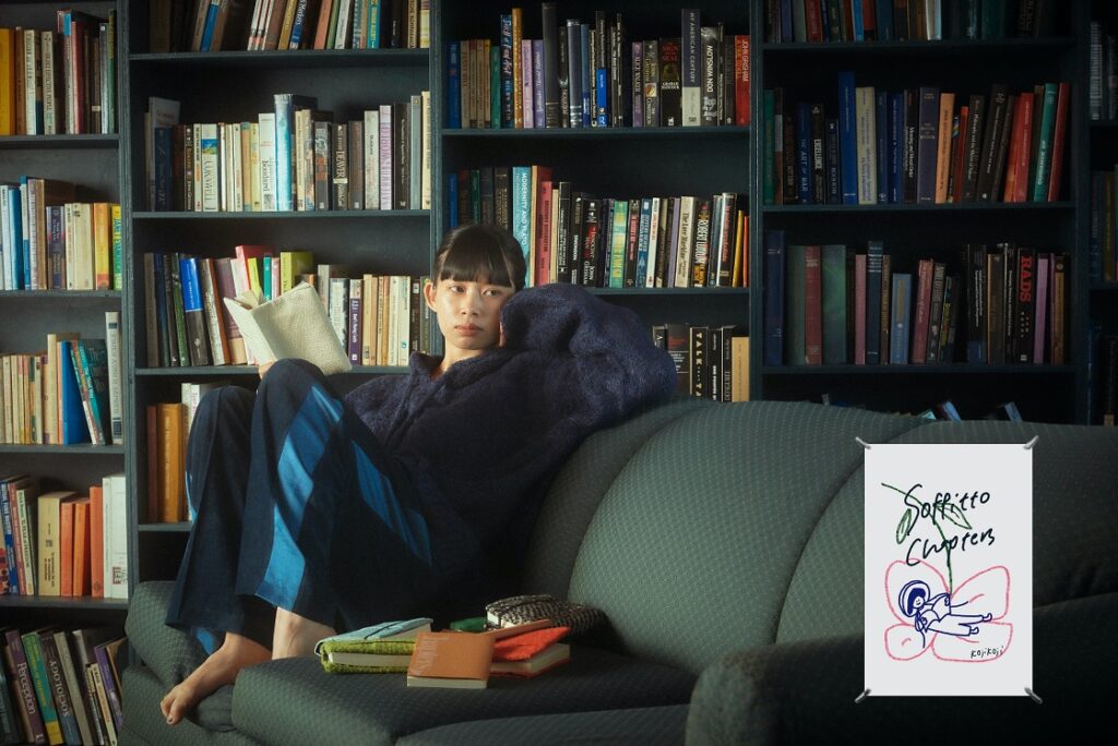 さらに、次世代のシンガーソングライターとして注目を集めるkojikojiがChapters書店のサービスからインスピレーションを受けた楽曲「金柑」を書き下ろし。kojikojiデザインによるフーディ(¥18,700)とベロアパンツ(¥23,100)の販売も! 11月3日よりSoffitto店頭・オンラインにて限定発売されます。