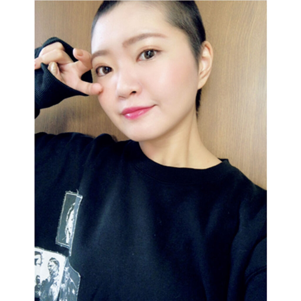 抗がん剤治療が終わって髪が生え始めた頃。闘病中もおしゃれやメークを楽しむ気持ちを大事にしたかったんです。