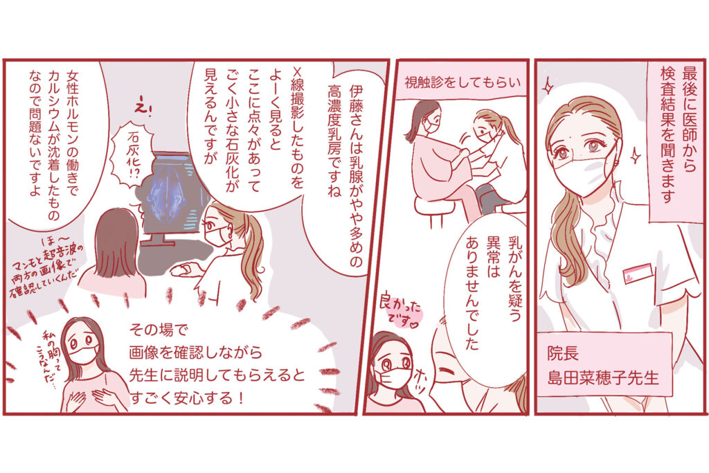この企画を通して、乳がんはいかに早期発見が重要なのかを理解しました。検査結果を聞いた瞬間は、心から安堵…。自分はもちろん家族のためにも、これからは年1回のチェックを怠りません!