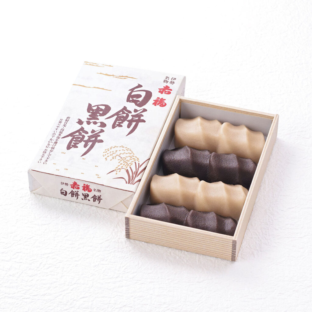 江戸中期の1707年に創業して以来、お伊勢参りの人々をもてなしてきた赤福。長い歴史を有する名物「赤福餅」に仲間入りしたのが、2021年から販売されて評判を呼んでいる「白餅黑餅」です。江戸から明治時代まで作られていた黑餅は、こっくりと素朴な甘さの黒砂糖味。平成から手掛ける白小豆餡を使った白餅は、さらりとした舌触りとまろやかな甘さに。江戸から令和を結ぶ2色を折箱に詰めています。直営店と一部店舗で限定販売、オンラインショップは10月上旬〜5月下旬の販売です。
