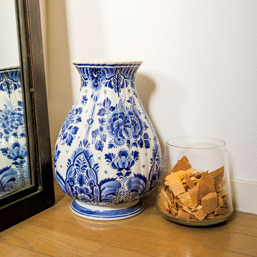 目に留まるのは、コーナーごとに置かれた花器やアート。デザイナーならではの審美眼で配されたアイテムが空間のアクセントになっています。