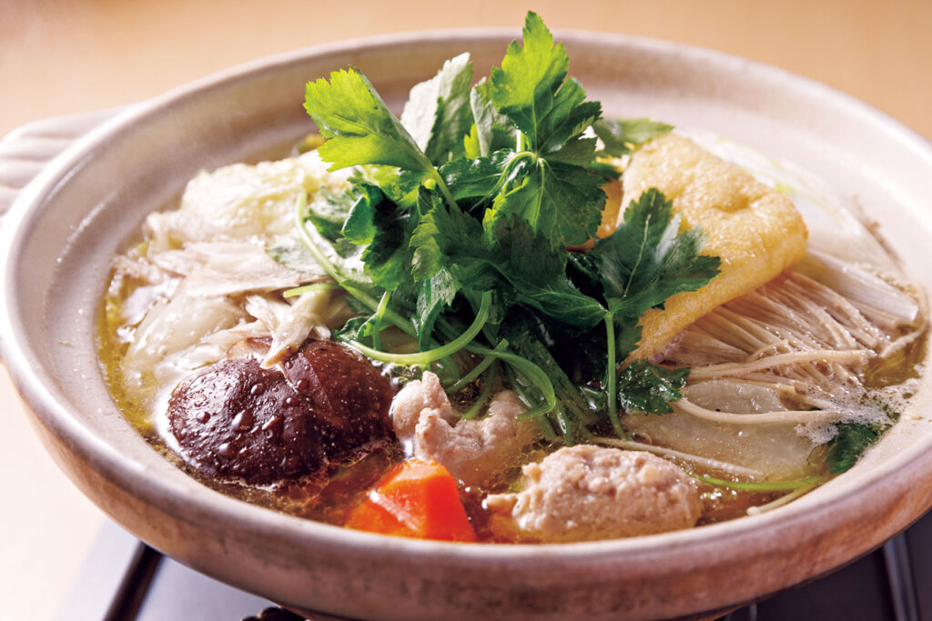 昭和最後の大横綱と称される千代の富士が引退後、親方として構えた旧九重部屋がちゃんこ鍋店に生まれ変わりました。相撲部屋をそのまま生かした空間に入店するや、目に飛び込んでくるのは実際に使われていた土俵!臨場感あふれる土俵際で楽しめるのは、元横綱がこよなく愛し、弟子たちに受け継がれた味。ちゃんこ鍋は、ふわふわの鶏つくね、鶏肉と豚肉、たっぷりの野菜と具だくさんながら、澄んだ鶏塩出汁スープが味わい深く、〆まで余さずに完食すること間違いなし。個室もあるので落ち着いた会食にもおすすめです。