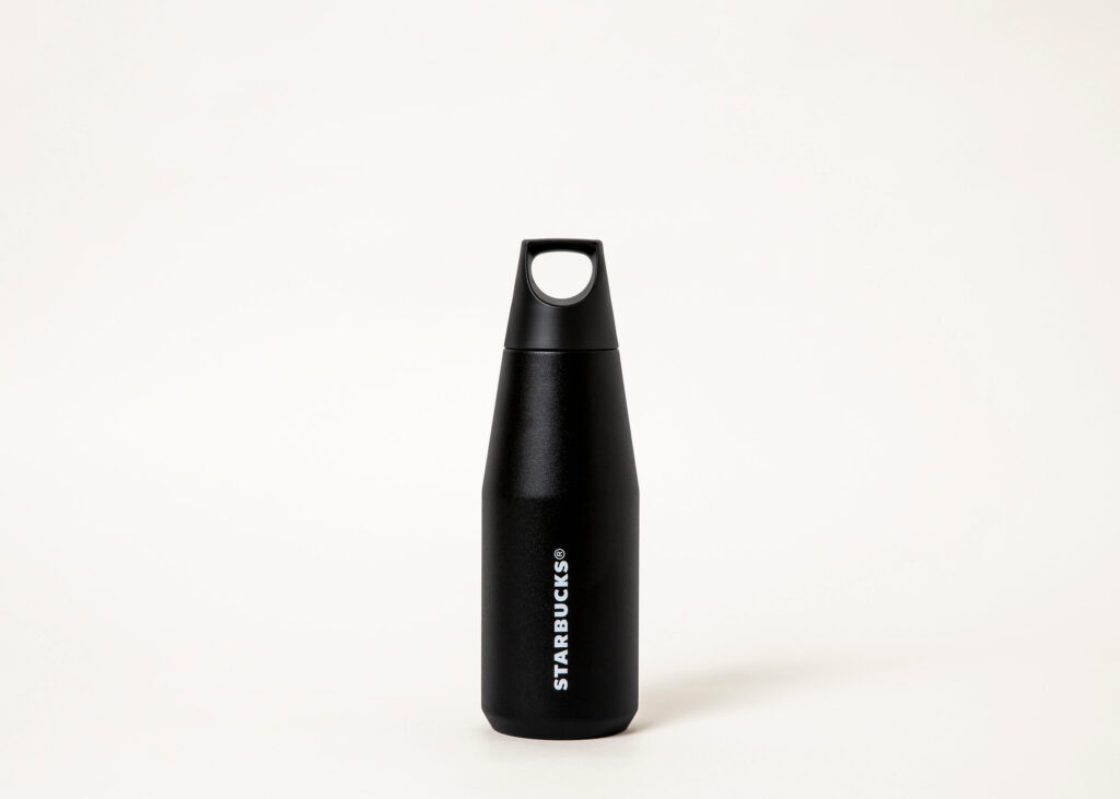 今回の「FRAGMENT DESIGN」とスターバックスのコラボレーション企画では、KINTO社のトレイルタンブラーというモデルを採用。大容量のサイズに加えて、ボトル本体は錆びにくく耐久性に優れた18-8ステンレスが採用され、表面は、傷がつきにくいパウダーコーティングが施されています。ハンドル付きで持ち運びしやすい設計なので、アウトドアに最適です。カラフェとしても使用しやすい形状に設計された本品は、複数人での使用シーンにも対応します。特に、スターバックスのベンティサイズにも余裕をもって対応できる1080mlのステンレスボトルは、カラフェやポットの代わりとしても使える便利なサイズです。