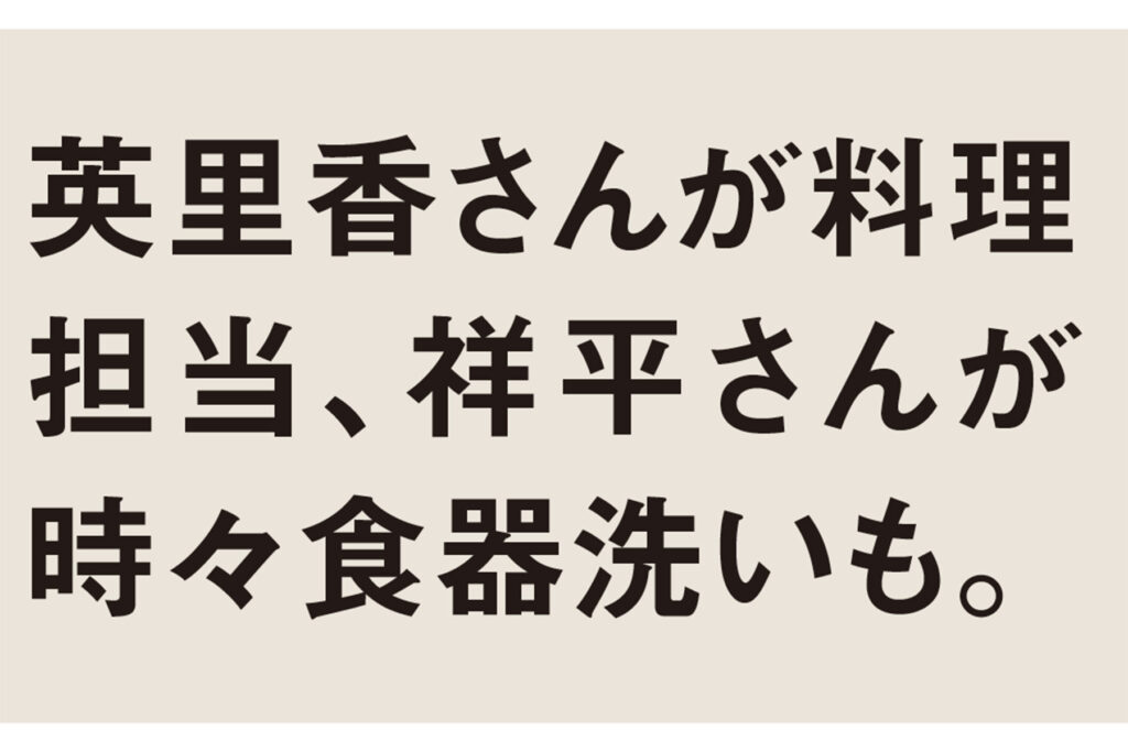 共通の友人の紹介で出会う。2年の交際期間を経て、英里香さんの28歳の誕生日にプロポーズ。祥平さんはラグビープレイヤー、英里香さんはプロスポーツの報道カメラマンとして働いた経験があり、お互いにスポーツ好き。