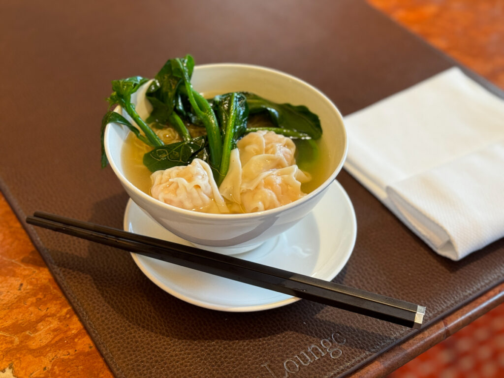 最終日の朝はパッキングもあるので、ホテルでのんびり朝食を。マンダリン オリエンタル 香港の朝食は中国料理、洋食ともに大満足のクオリティ。点心や麺料理などのオプションもあり、香港名物ワンタン麺をオーダーしました。