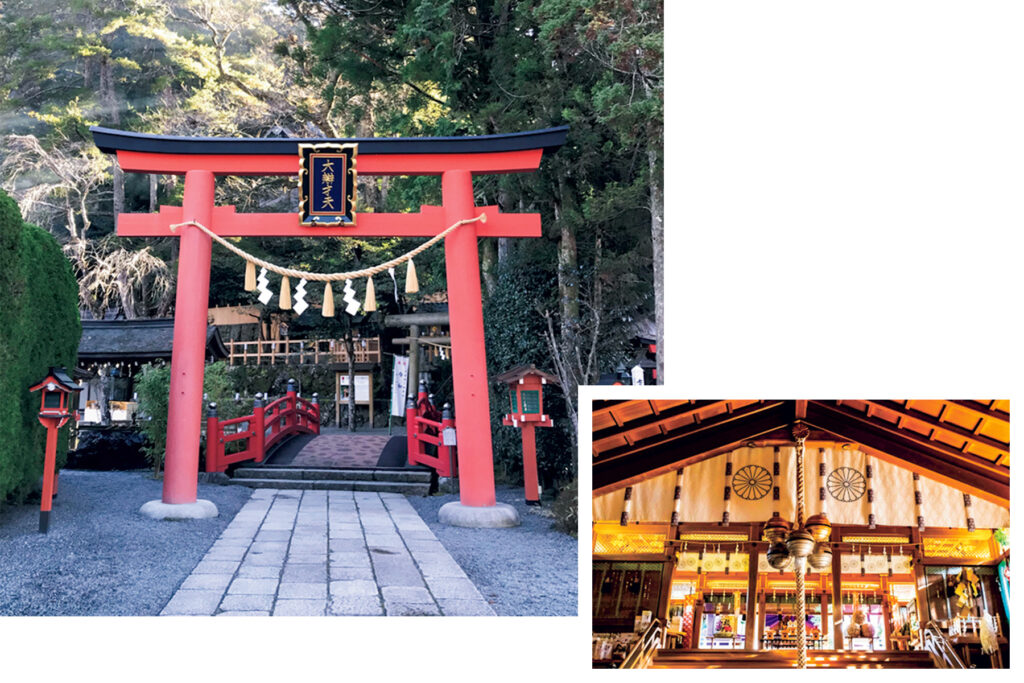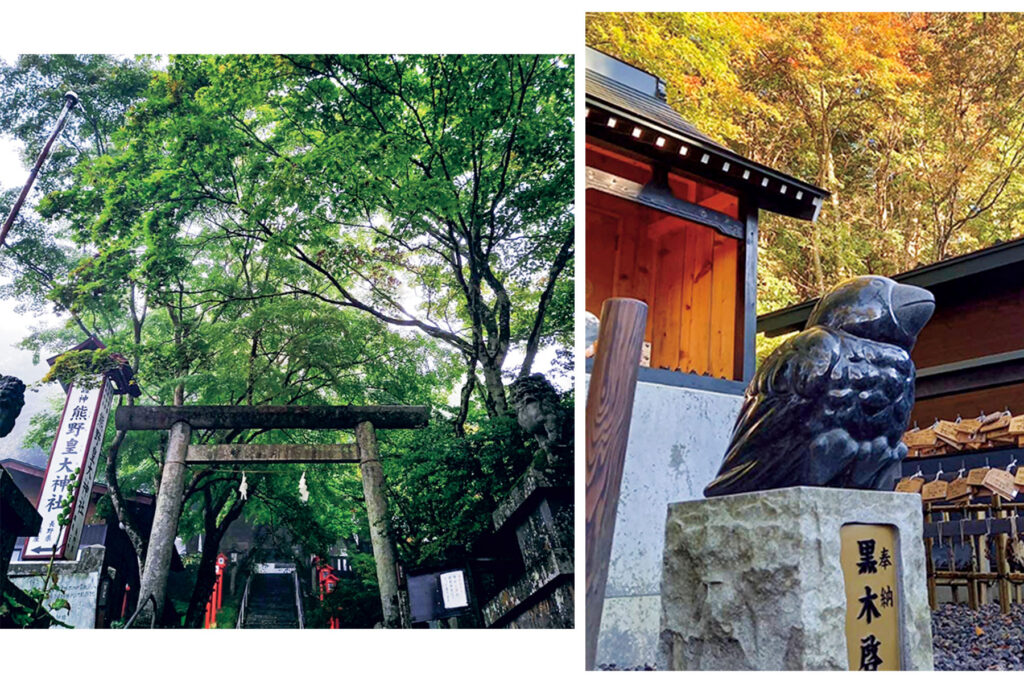 濱口:軽井沢の熊野皇大神社(❻)も面白かったです。長野県と群馬県の県境に位置していて、樹齢1000年以上の御神木にはハートのような形の穴があるんです。穴からハート形の空が見えて、感動しました。境内の一角にある八咫烏神社は、狛犬が八や咫た烏がらすなんですよ。八咫烏はサッカー日本代表のシンボルなので、関係者が必勝祈願に訪れることもあるとか。