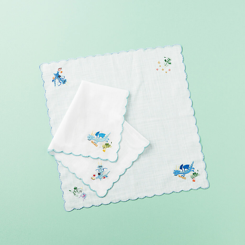 “格別の、ひそやかな贅沢”をコンセプトにしたハンカチーフ専門店クラシクス・ザ・スモールラグジュアリ。柔らかくさらりとした使い心地の綿麻素材の干支ハンカチーフは、辰の顔と尻尾のはみ出し刺繍に注目! 見るだけで和む遊び心のあるデザインで、使う度に開運を。