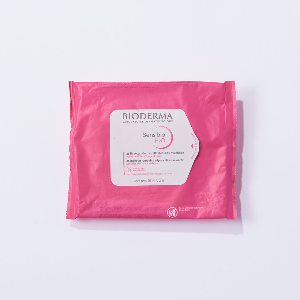 すっぴんで機内に乗りたい時に持っておきたいのが、クレンジングシート。ビオデルマのシートは大判で敏感肌にも使える処方だから、いつもとは環境が変わる旅先でも安心。また国によっては水が合わず肌が荒れてしまうこともしばしば。そんな時にも重宝します。