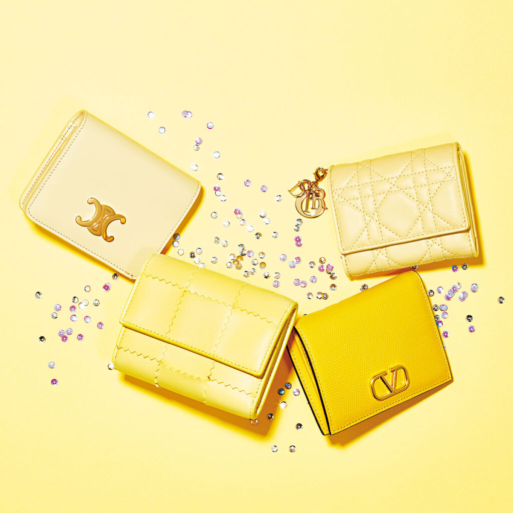 [右上から時計回りに]【DIOR】財布[H8.5×W10×D2.5㎝]¥92,000(ディオール/クリスチャン ディオール)【VALENTINO GARAVANI】財布[H9×W12×D3㎝]¥73,700(ヴァレンティノ ガラヴァーニ/ヴァレンティノ インフォメーションデスク)【BOTTEGA VENETA】財布[H9×W11.5×D2㎝]¥97,900(ボッテガ・ヴェネタ/ボッテガ・ヴェネタ ジャパン)【CELINE】財布[H9×W11×D3㎝]¥89,100(予定価格)(セリーヌ バイ エディ・スリマン/セリーヌ ジャパン)