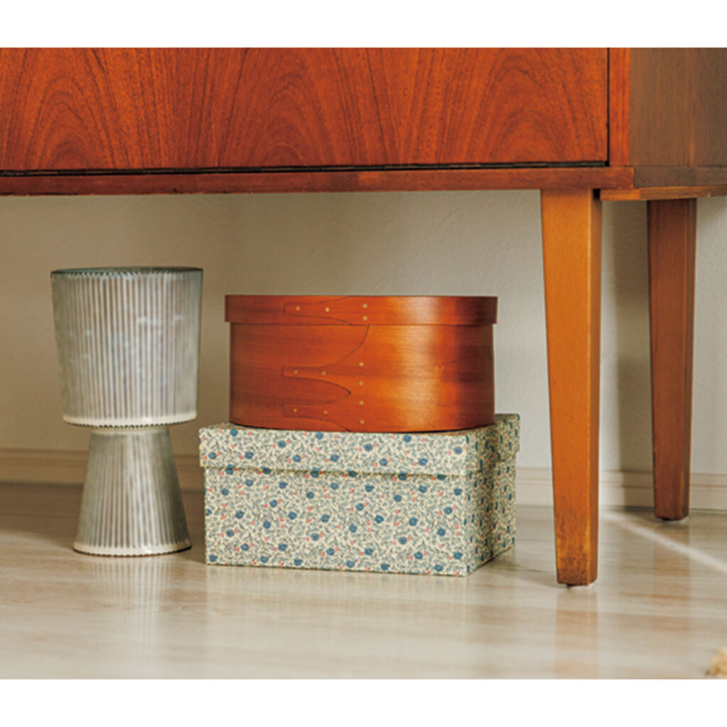 シェーカーボックスには裁縫道具、ペーパーボックスにはネイルグッズを収納して、生活感が出るアイテムは目に付かない工夫を。