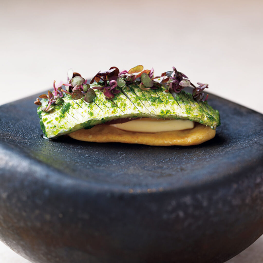 カジュアルなバルからモダンスパニッシュの名店まで、幅広いジャンルのスペイン料理店で腕を磨いた坂田慎吾さんが、2023年10月に満を持してオープン。これまでの経験を存分に生かした料理を全8品のおまかせコースで楽しむことができます。オーセンティックなメニューをベースに、ご自身が生まれ育った熊本の食材を取り入れるなどオリジナリティある一皿に仕上げているのが魅力です。オープンキッチンを囲むカウンターは、一部分が4人掛けのテーブルとしても利用できるので、大人の女子会スポットとしても早くも注目を集めています。
