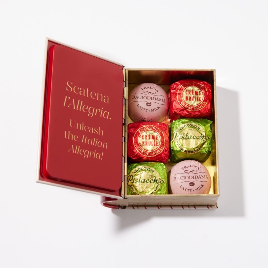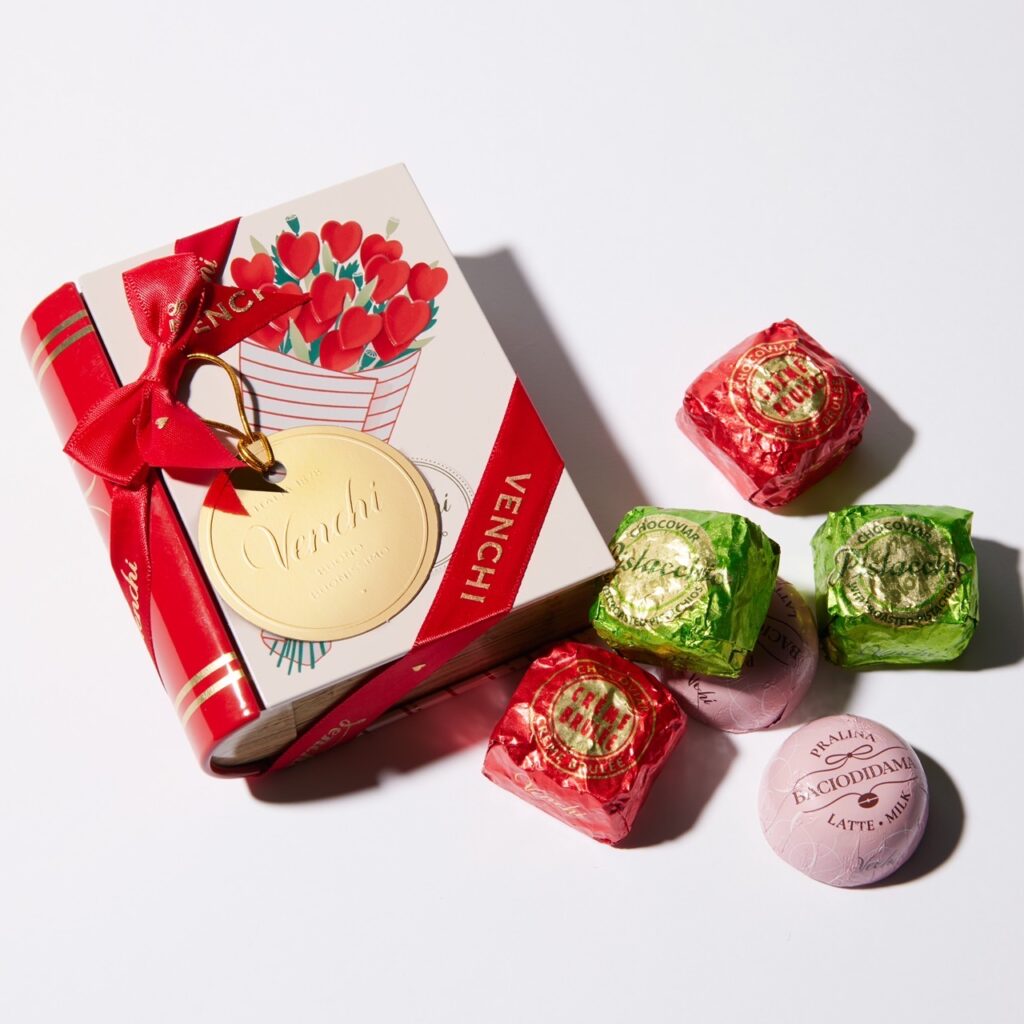 「イタリアの老舗チョコレート専門店『ヴェンキ』は、毎年この時期になると女心をくすぐる可愛らしいパッケージのチョコレート商品が豊富に並びます。今年のイチ押しは、ブック型の缶が目印の『スカーレット ミニブック缶』。蓋を開けると、店舗の量り売りのチョコレートでいちばん人気の『チョコビア ピスタチオ』を含む、計3種類のチョコレートが整列しています。老舗店ならではのコクが堪能できるほか、ビスケットやカカオニブを取り入れており、一度に異なる食感を楽しめるのもポイントです」(桶谷さん)
