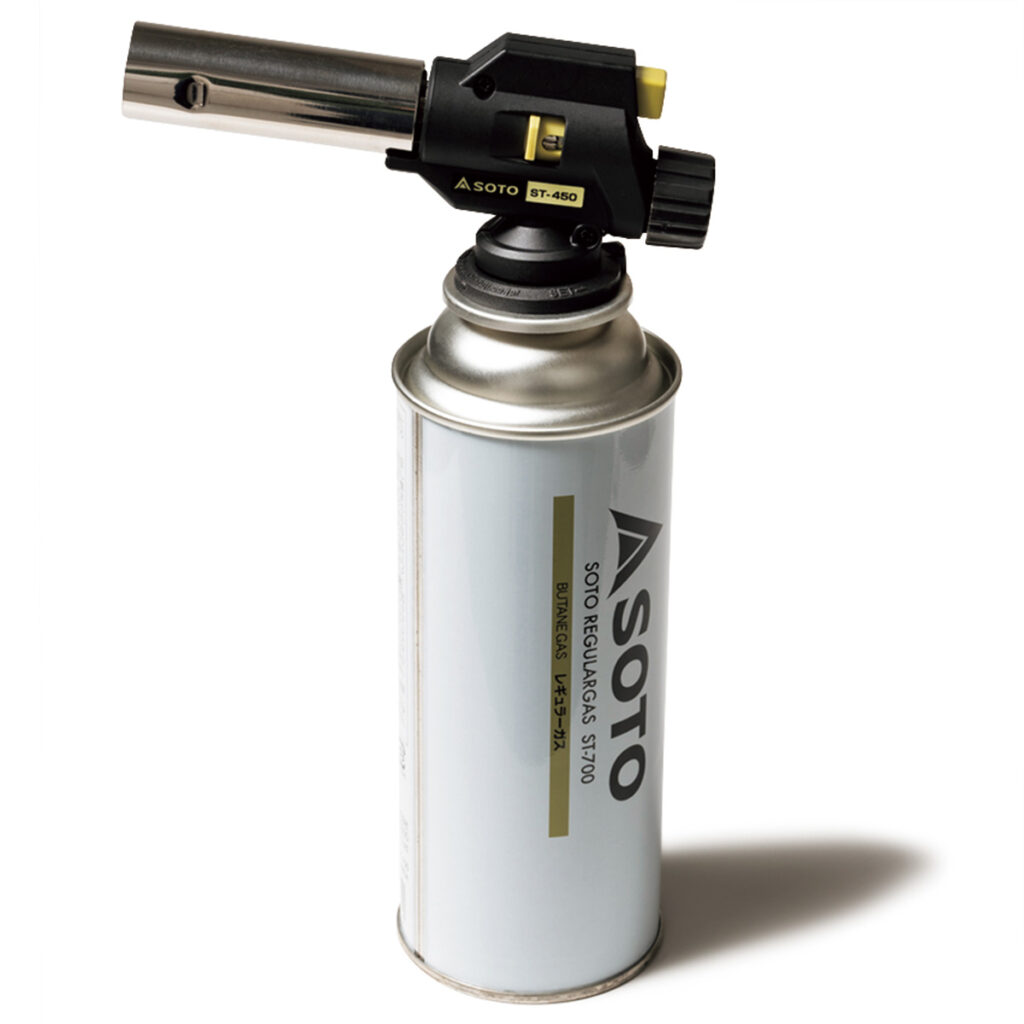 「女性でも安全に使える、カセットガス式バーナー。彼との晩酌や友達とのホームパーティーで、しめさばやチーズなど炙りメニューが簡単に作れて家飲みが盛り上がる!」ボンベセット¥3,080(新富士バーナー)(CLASSY.リーダーズ/東 美結さん)