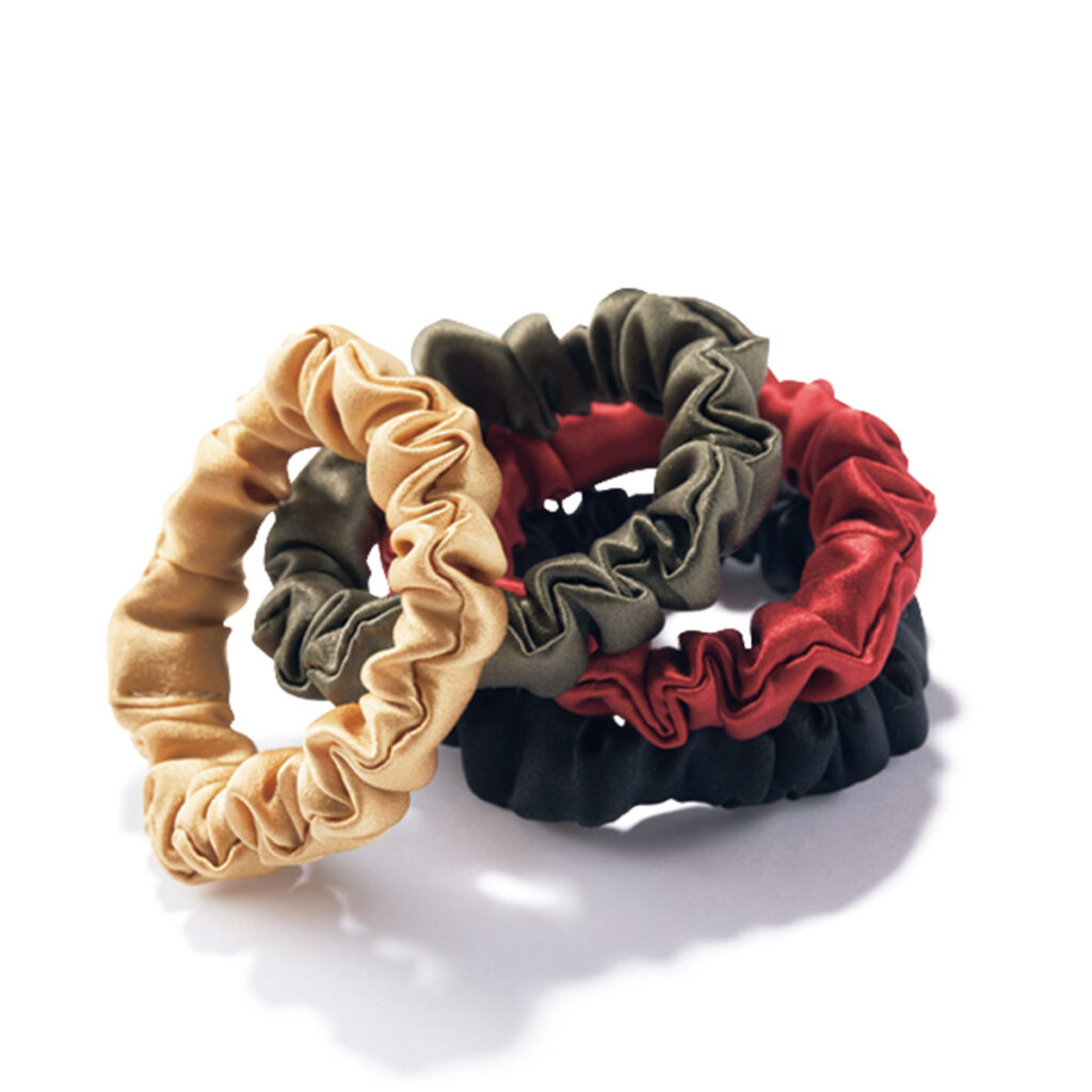 「アレンジはあまりしないけど、キュッとひとつ結びするのは好き。ヘアスタイリストのshucoさんが手がけるシルクの細いシュシュはしっかり結べるし、髪に優しいからずっと愛用中。」ヘアスタイリストのshucoさんによるヘアアクセブランド。「大きいシュシュは気恥ずかしくて…(汗)このさりげなさがちょうどいい」。シュシュ「SOPHIE Mini ChouChou」※4本セット¥5,830(TRESSE/トレスオンライン)