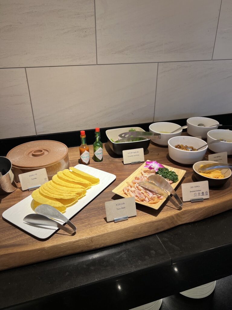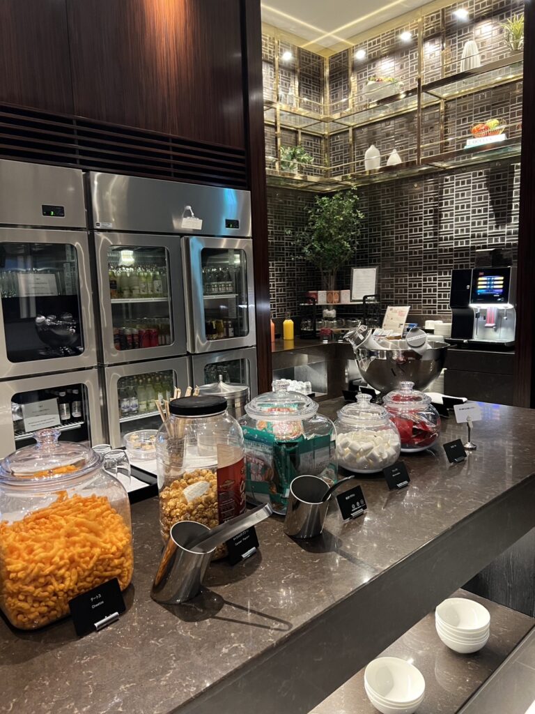 今回宿泊したのは、エグゼクティブラウンジのアクセス付きルーム。ライブラリースペースとダイニングスペースを備えたラウンジでは、横浜ならではのジュースや手軽なスナックを自由に楽しめます。さらに17時以降はアルコールの提供も! 地ビールやワインを楽しみつつ、ゆったりとした時間を過ごせます。ラウンジでは朝食ビュッフェも提供。