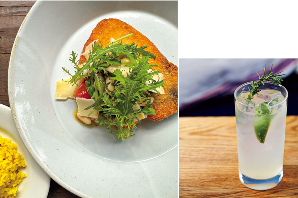 岸本:70席あって広いんですね!人数が多いときにもいいですね。同じく空間が素敵なところだと、国立競技場近くのRISTORANTE & BAR E’VOLTA 神宮外苑の杜プレミア店(④)は、一面ガラス張り&天井高4mと抜群の開放感!緑豊かな景色で自然光がたっぷり入り、ランチタイムならではの気持ちよさを感じられます。お料理は日本らしさを取り入れたモダンイタリアン。柑橘系のカクテルを飲んだのですが、生のフルーツをそのままいただいているかのような美味しさでした。