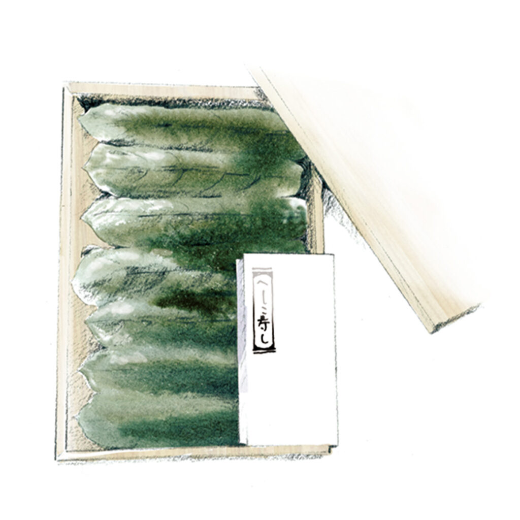 京都らしさを感じられる祇園にある手土産の専門店「白」。お土産にはうまみが凝縮された鯖と、レモン皮の酸味が相性抜群のへしこ寿司がおすすめです。包んでもらっている間に、お茶をいただけて、ゆったりとした京都時間を満喫できます。価格は¥2,700。(ファッションコーディネーター/佐藤 匠さん 33歳)