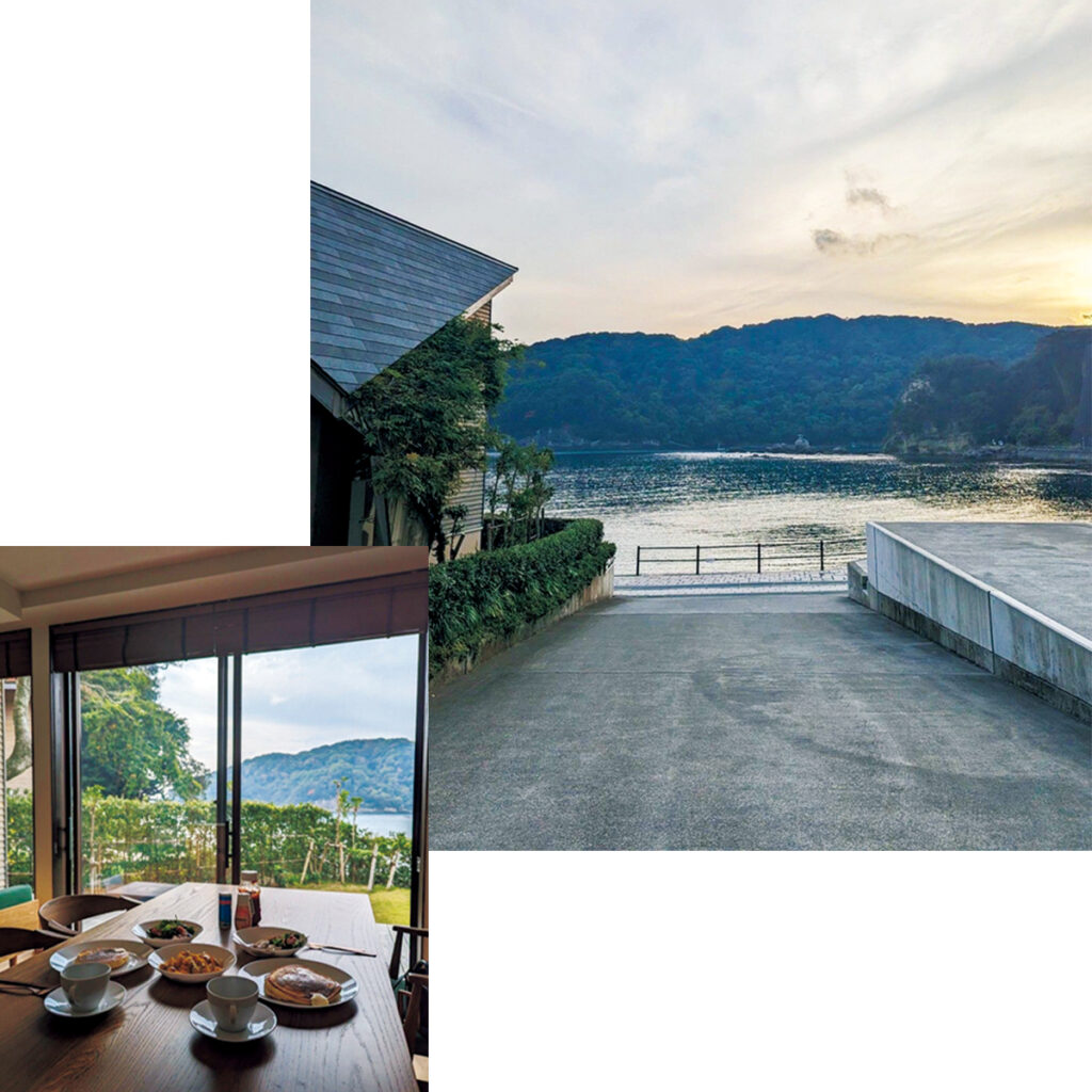 匠:そうなんです。旅って食べる以外に何をしたらいいのか…しかもそんなにずっとは食べられないじゃないですか(笑)。だからただぼーっとしたり、地域の風土や自然を満喫するのが魅力だと思っています。数年前に祖母と母親と母娘3代で島根を旅する機会(①)があって、歴史ある寺院や景観といった街の風景、ちょっとひなびた温泉街にほっと癒されるような感覚があったんです。高級だったり有名な宿じゃなくても、土地そのものを楽しめる国内旅っていいなと思いました。だから景観の素敵なロケーションがあれば、お目当ての観光地や宿やお食事処がなくても、バケーションレンタルや貸別荘を利用しながら足を運ぶようになりました。地元で買物をして料理すればコスパもいいし、地産地消で食材も楽しみながらのんびりできます。先日は静岡の下田でバケーションレンタル(②)を楽しんだり、小田原の江之浦測候所(③)で体感アートを楽しむ旅へサクッと車で出かけたりしました。