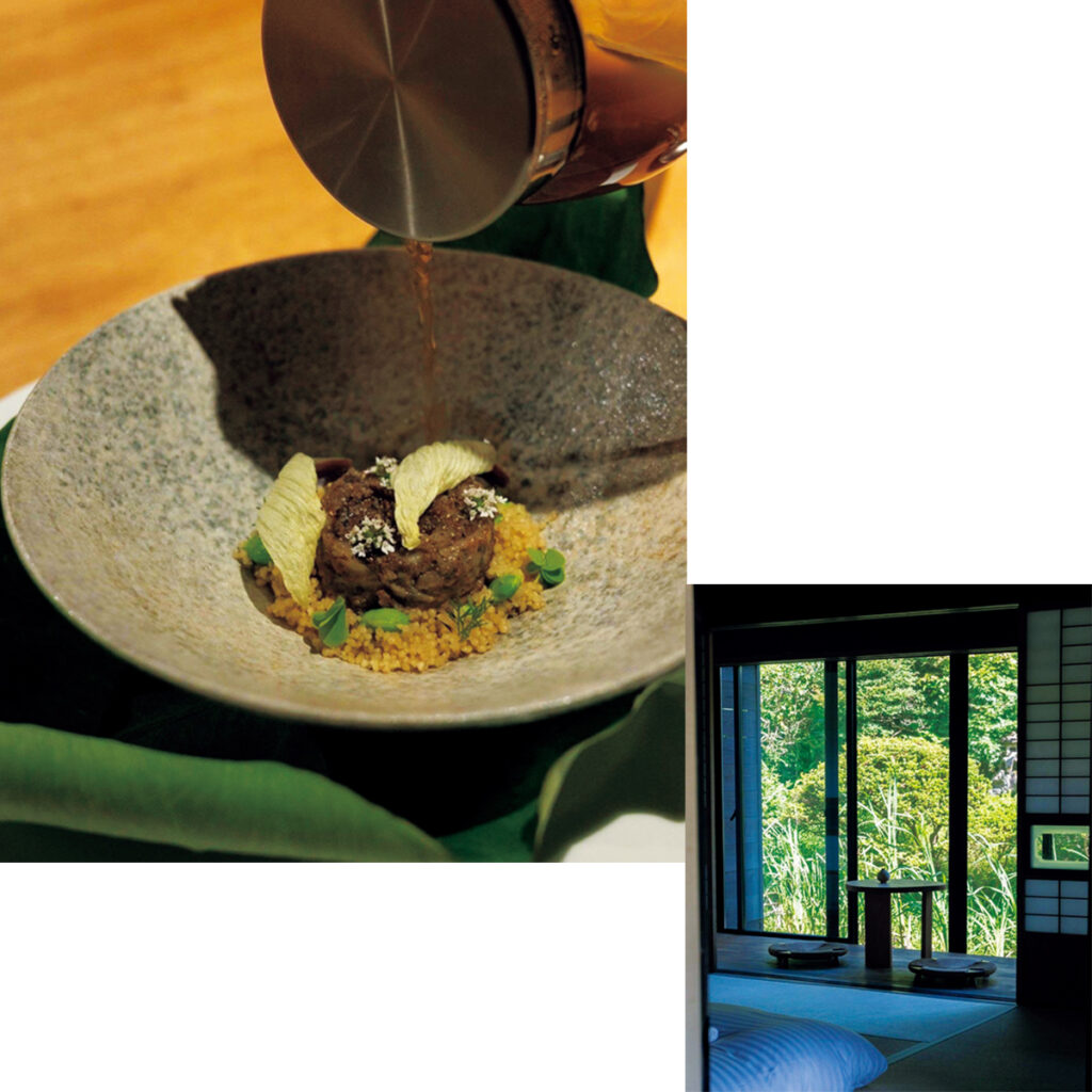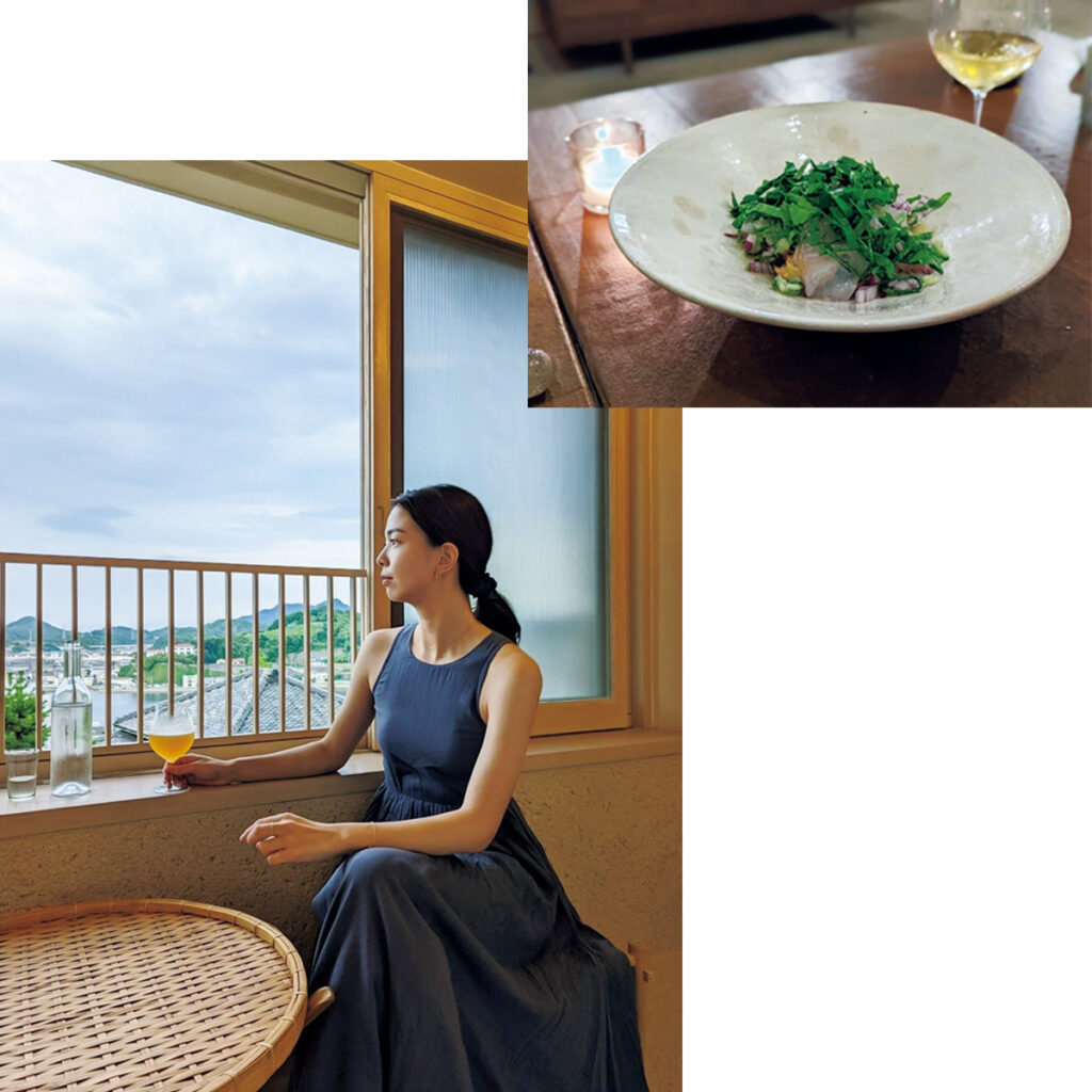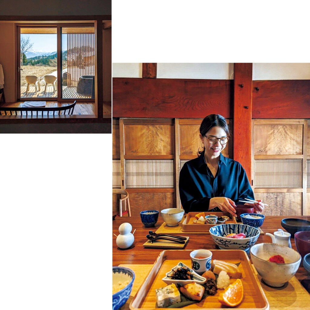 匠:私はいつも「一休.com」のバケーションレンタルで探しています。あとは逆に、お料理を目当てにオーベルジュに行く機会も増えました。最近行って良かったのは、大好きな瀬戸内海の中でも愛媛の砥部町にある「TOBEオーベルジュリゾート」(④)。お料理から砥部焼の器まで素晴らしかったし、四国の美しい海と緑の景観、そして設えまで楽しめます。オーベルジュって地域の名産や旬がいただけるし、そういう宿はたいてい食器のセレクトなども素敵で、窯元の器など文化に触れる機会にもなります。他には新潟・南魚沼市の「里山十帖」(⑤)や千葉のいすみ市にある古民家オーベルジュ「季舟庵」(⑥)が食・空間・景観すべてが印象的でした。