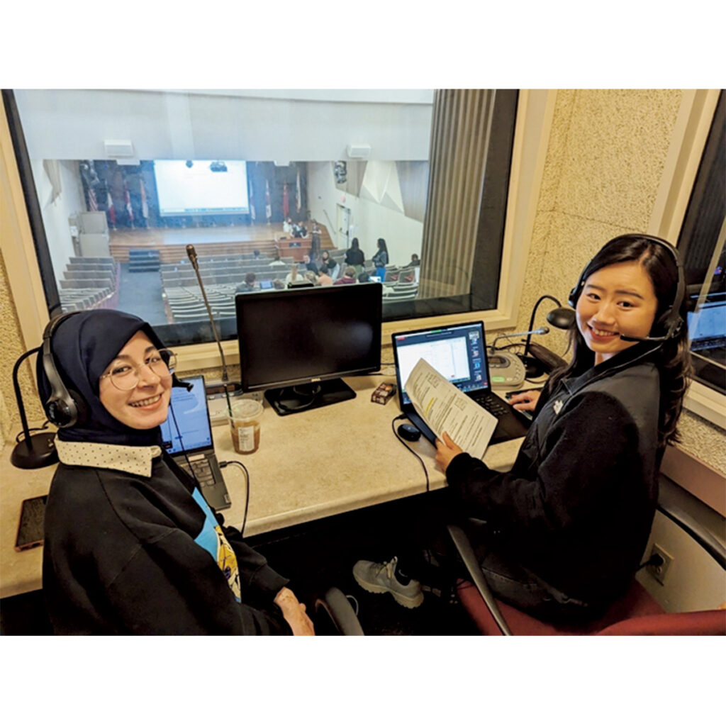 その中で見えてきたのは「30歳までに通訳者になりたい」という明確な目標。国連などの国際会議で同時通訳を担うようなトップレベルの通訳者になるには、修士号を持っていると有利と知り、2年目の終わりから準備を開始。会議通訳修士課程を設けているミドルベリー大学院に留学を決めました。通っていた学科は入学者の約半分しかストレートに卒業できないシビアな世界。ハイレベルが求められる厳しい授業で、私自身もメンタルがボロボロになりましたが、踏ん張れたのは目的意識が強い人たちと切磋琢磨できたから。現地で予期せぬことが起こったとき、先を見失わないためにも、留学の目的を明確に持っておくことの大切さを痛感しました。