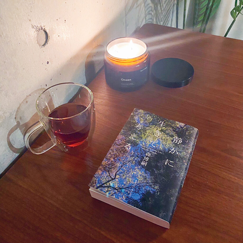 集中して読書を楽しむ環境づくりにはキャンドルがマスト。「Earl of East」の「Onsen」は、温泉気分を味わえる爽やかな香りがクセになり、ついに大きいサイズを買いました。