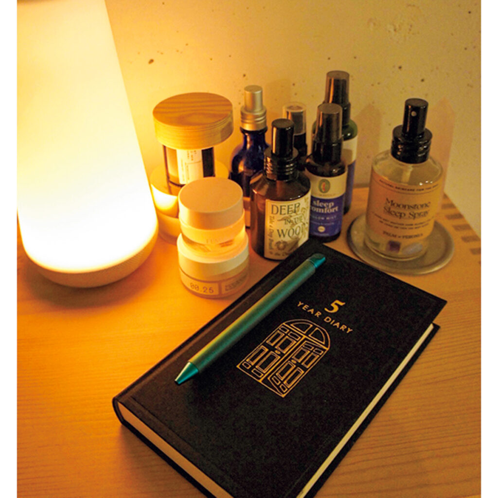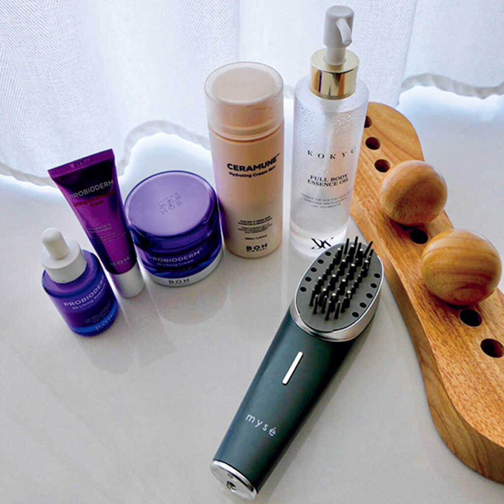 早めにお風呂に入り、たっぷり時間をかけて行うスキンケアが何よりも幸せ。顔のみならず、筋肉の疲れやコリをほぐす「ツボぐりぐり君」を使った体全体のケアも怠りません。