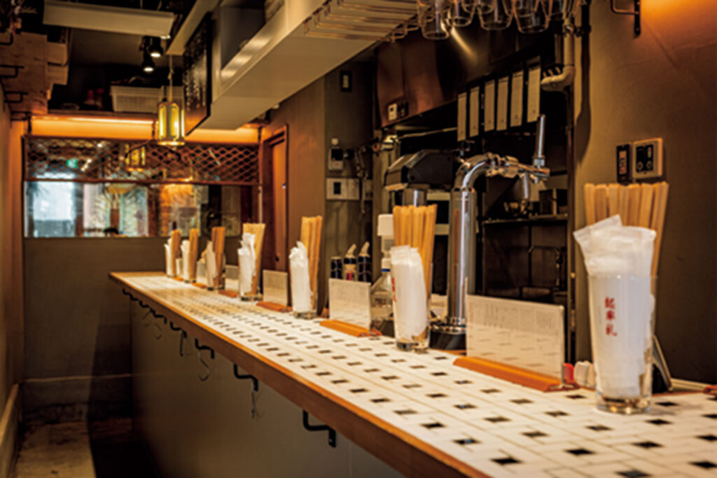 バーやスナックなどが軒を連ねる渋い路地に、昨年12月にオープンしたばかり。シェフとして厨房に立つのは、「ザ・リッツ・カールトン大阪」や「ウェスティンホテル東京」、「中華香彩JASMINE」で研鑽を重ねた井上史子さん。カウンター越しに名店仕込みの技を目の当たりにして、立ち上る香りや音に食欲をくすぐられるのは小体な立ち飲みだからこそ。レストランではコースや大皿で供されることが多い本格中華が、1人でも楽しめるポーションになっているのも嬉しいポイント。お茶割りには高級台湾茶「UMACHA」の香り高い水出しを使い、料理もドリンクもカジュアルながらハイクオリティ!