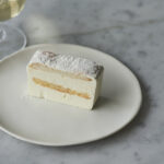 バニラ、レモン、トンカ豆を組み合わせたクリームを、ふわっと軽やかなダックワーズ生地にたっぷりと挟んだダックワーズサンド。Mr. CHEESECAKEのシグネチャーフレーバーを再現したレアチーズケーキのような甘く爽やかなクリームと、旨みのあるダックワーズ生地が重なる心地よい味わいを楽しめる!