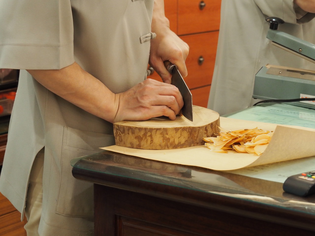 その処方箋を持って店舗に戻り、漢方医の診断に従って漢方を調合。様々な植物を細かく粉末にし作ってくれる様子は、なかなか見ごたえある光景です。受付〜漢方調合まで約1時間ほどで受け取ることができました。