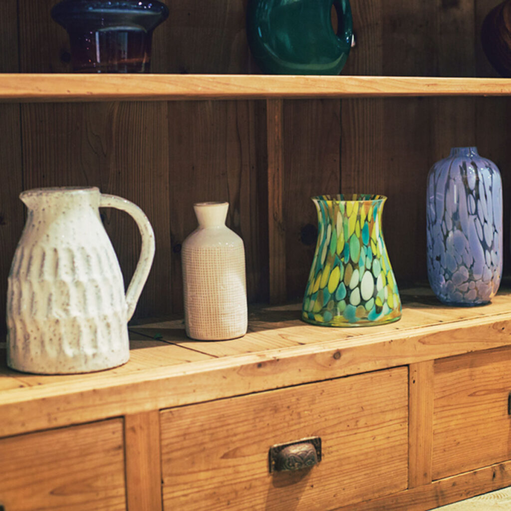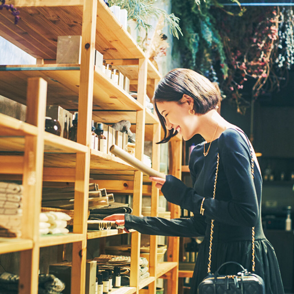 「CLASSY.の撮影で初めて訪れた際に、お買物欲を駆り立てられたfêteとcoin。数日後、早速お店に行き、ショッピングを堪能しました。fêteはドライフラワーの種類が豊富なフラワーショップ。グレーを基調にしたお部屋には色褪せたドライフラワーを合わせたいと思っていたので、おうちの写真を店員さんに見せつつ、いろいろと相談に乗ってもらいました。1時間くらい滞在してたかも(笑)。訪れるたびにお花のバリエが変わるところも好きです。fêteと隣接するcoinでは、器や花瓶、香りものをチェック。今愛用している、LA在住の陶芸家・渡邊翔士さんの花瓶もここで購入しました。渡邊さんはじめ、作家さんたちのこだわりの器が揃うのも嬉しい。併設されているコーヒーバーのディスプレイも素敵で、空間全体がお部屋作りの参考になるスポットです」