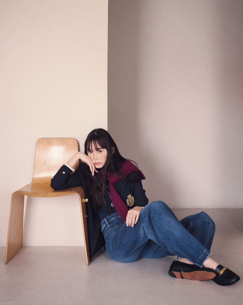 【衣装クレジット】ブレザー¥88,000ケーブルニット¥28,600タートルニット¥20,900デニムパンツ¥40,700ローファー/参考商品(すべてポロ ラルフ ローレン/ラルフ ローレン)その他/スタイリスト私物