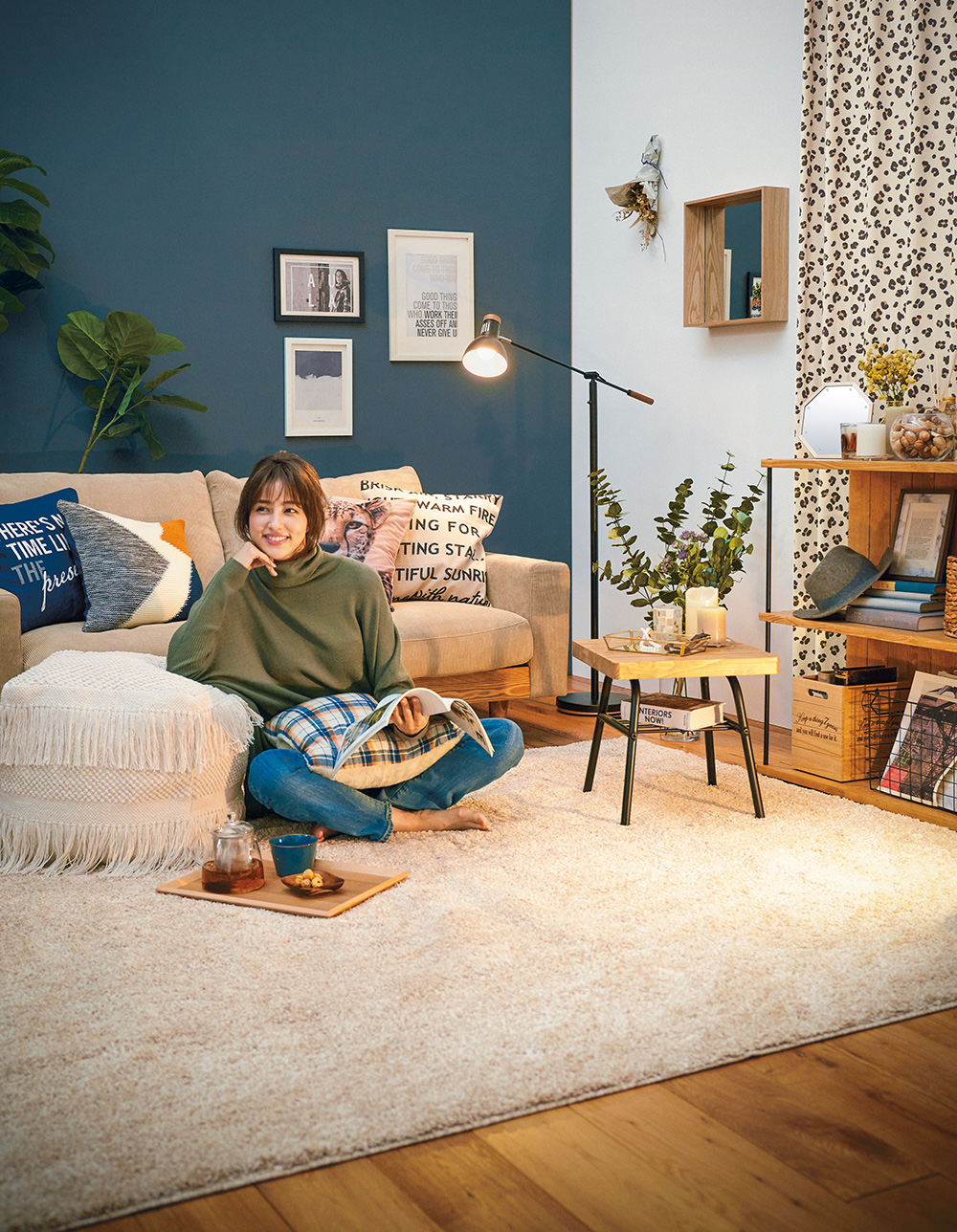 2.5人用ソファ¥55,463[ソファ上のクッションカバー各種左から] ノータイム¥555 ATジオニットQ¥925 ATリアルピーターQ¥925 LNレタード¥740 プーフ本体¥1,818 プーフカバー¥3,173 手ぽかクッション¥1,195 トレー¥1,380 ティーポット¥1,102 マグ¥277 アカシアスクエアプレート¥185 フリーテーブル¥11,019 小物トレー¥925 LEDキャンドル¥925※電池別売り アロマキャンドル¥370 キャンドルホルダー¥138 ラグ〈約200×240cm〉¥9,250 ソファ後ろのフェイクグリーン¥18,426 ポスターフレーム〈A4〉各色¥555〈A3〉¥740 フロアランプ¥5,547※電球別売り フラワーベース¥925[ 中に入れたフェイクグリーン各種]グリーンブーケ¥925 シングルフラワー各¥462 ウォールミラー¥2,769 イージーオーダーカーテン〈135×245cm×1枚〉¥7,778 シェルフ¥23,056【 シェルフの上段左から】 卓上ミラー¥925[アロマキャンドル各種]セゾンドライフルーツ¥740 ホワイト¥370 ベージュ¥462 キャンドルホルダー各¥138 フラワーベース¥555 ガラス容器入りポプリ¥740 アロマディフューザー¥1,843 フォトフレーム〈2L判〉¥740 木製バスケット¥925 ワイヤーバスケット¥1,380(すべてニトリ) その他スタイリスト私物