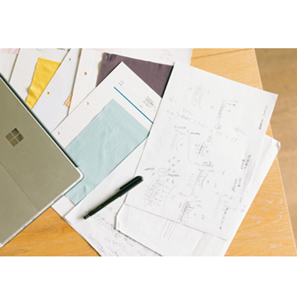 でもPRとしての自分を俯瞰したときに、コミュニケーションを取るのは得意だけど、スペックや機能の説明には自信が持てないところもあって。ものづくりの流れや背景を知れたら、再びPRに戻ったときの強みに繋がるんじゃないかと考え、異動を決意しました。新しい環境では右も左も分からず、日々勉強。生地の特徴を上司や商社の担当者にマンツーマンで教えてもらったり、染色工場に足を運んで知識を深めたり。PRの頃よりも作り手のこだわりや思いをダイレクトに受け取れている自覚があります。結婚への焦りも正直ありますが、仕事はずっと続けたいし、5年後にはMDとして独り立ちして、女性に特化したアイテムにさらに注力し、いつかはメンズも含め全体構成を上司のように見れるようになりたい。PRを経験した自分だからこそ、MDとPRの部署の架け橋的な存在になるのも目標です。
