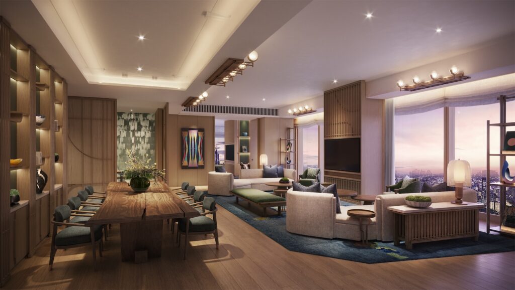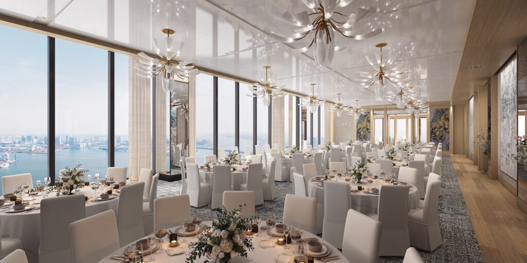 付帯設備:エグゼクティブラウンジ、レストラン・バー、屋外テラス、スカイチャペル、スカイバンケット、グランドボールルーム、スパ、シグネチャーインフィニティプール、屋外リラクゼーションプール、サウナ、24時間ジム