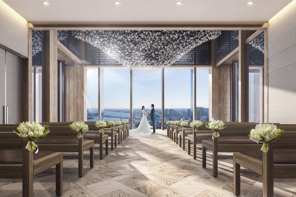 また、東京湾と都心を一望する壮麗なロケーションを活かしたウエディングにも注目。43階に位置する「SKYチャペル」は東京湾と都心のパノラマビューが広がり、披露宴会場はオープンキッチンを併設した天空のバンケットやクラシカルでエレガントなグランドボールルームなど、魅力的な会場から選ぶことが可能です。東京の中心、最寄りの浜松町駅から雨にぬれずアクセス可能な抜群のロケーションで、さらには羽田空港からは13分、東京駅・品川駅から6分という、立地の良さも嬉しいポイント。世界の王族や著名人を迎え、数々の歴史的な瞬間の舞台となってきた130年以上の歴史を誇るフェアモントで、格式高いウエディングを叶えてみては?
