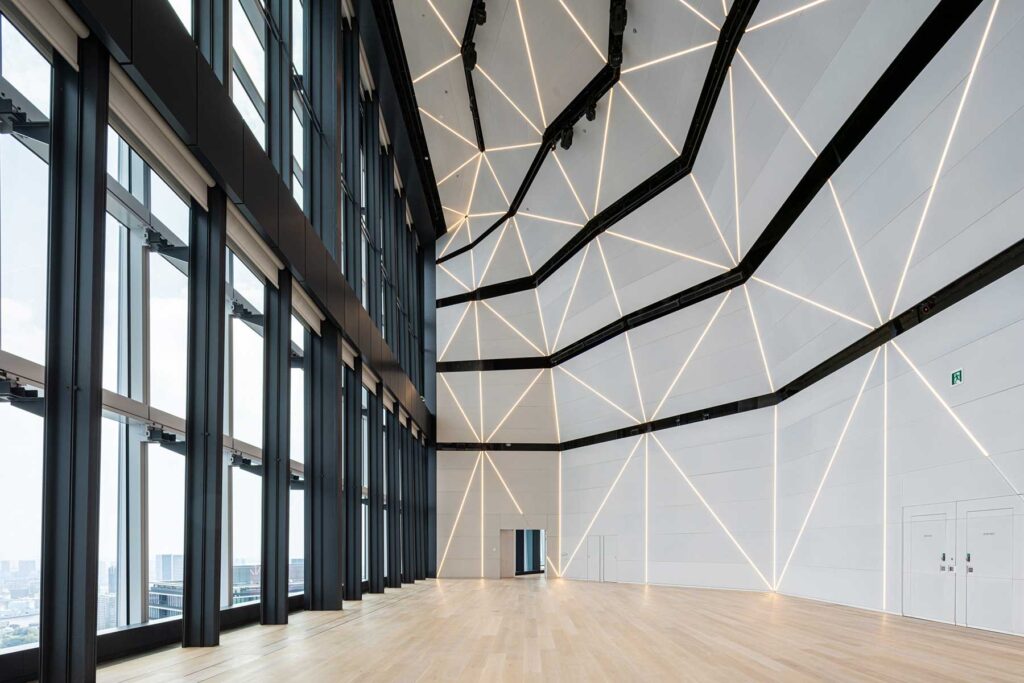 @ルイ・ヴィトン表参道ビル7F。現代アートの創造を促進するエキシビジョンスペース。パリの芸術機関フォンダシオン ルイ・ヴィトンの所蔵品を発表。空に浮かんでいるような景色を望めるガラス張りの空間は、新たなインスピレーションを喚起させる。