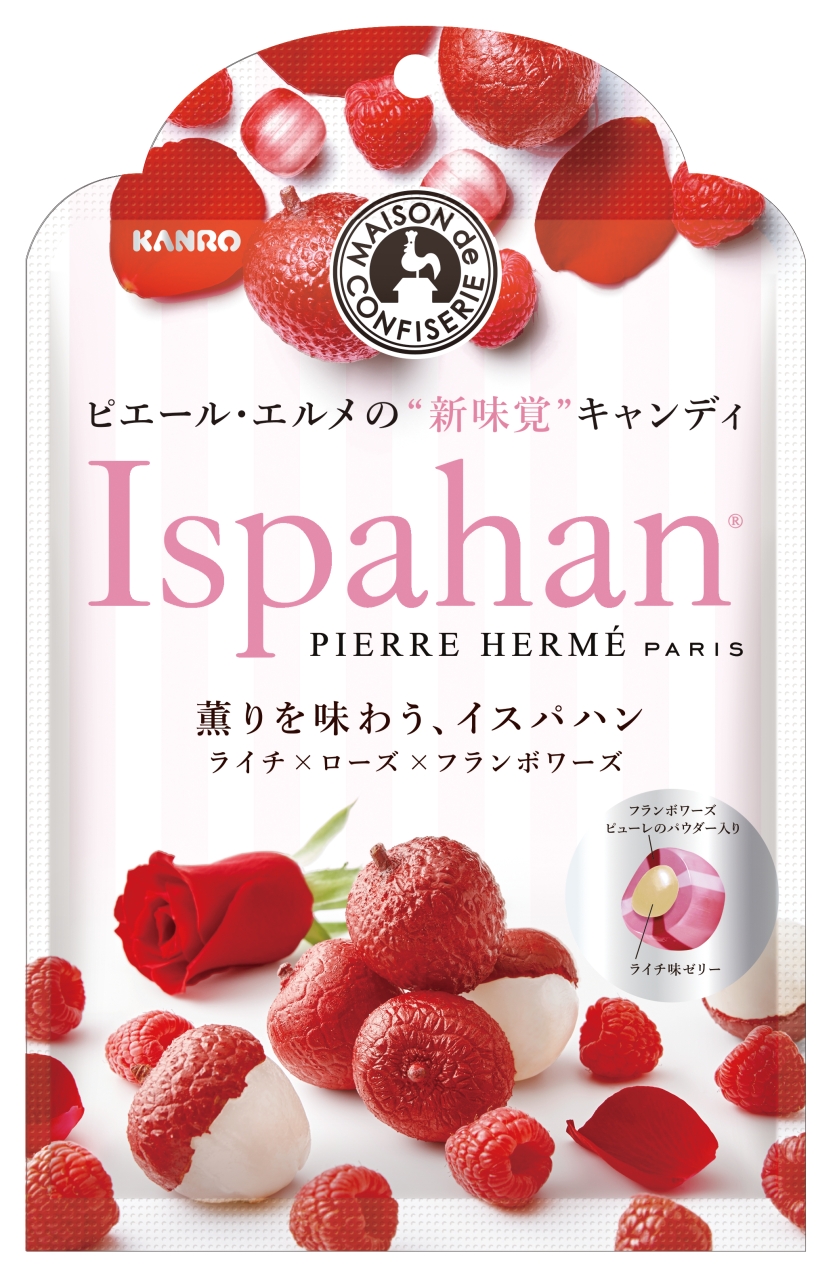 繊細なデザインと何度食べても飽きない深いお味で私たちの心を離さない、ピエール・エルメ。その看板メニューであるケーキ“イスパハン”がキャンディになって登場しました。香り高いフランボワーズとローズの風味は、ケーキで味わうイスパハンそのもの。柔らかいキャンディ部分をかみくだくと、甘酸っぱいライチ味のゼリーが現れて、2倍楽しめます。なによりもうれしいのは、コンビニで買えてしまうこと。自分へのちょっとしたご褒美や、ささやかなお礼になってくれそうです。