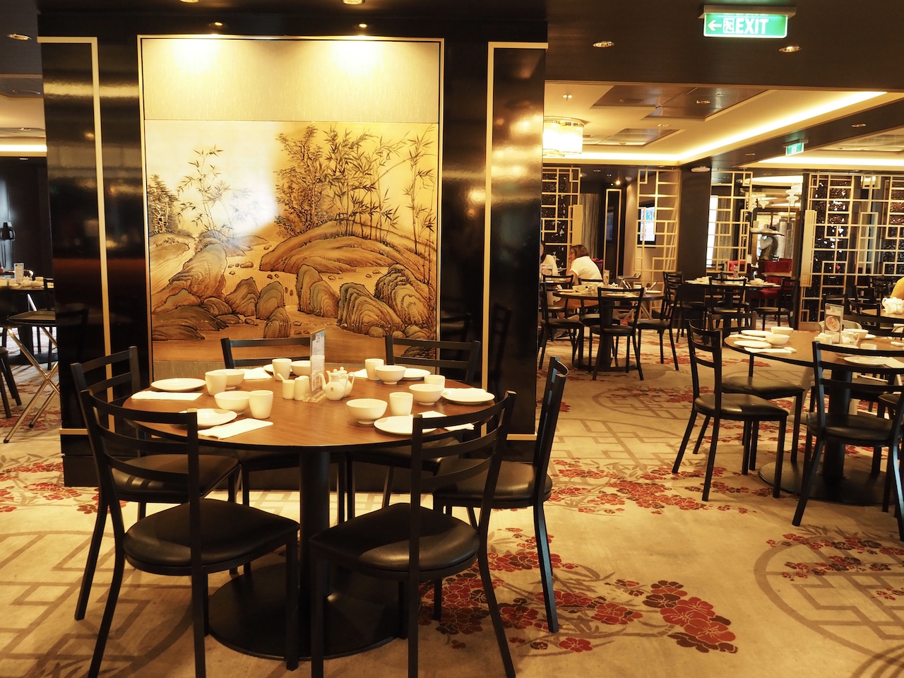 ランチは船内にある有料レストラン「シルクロードチャイニーズレストラン」へ。土鍋料理や北京ダックなど、本格的な中国料理がたくさん!真っ赤でシックな、高級感溢れるダイニング会場も必見。ドレッシーな格好で訪れたいレストランです。