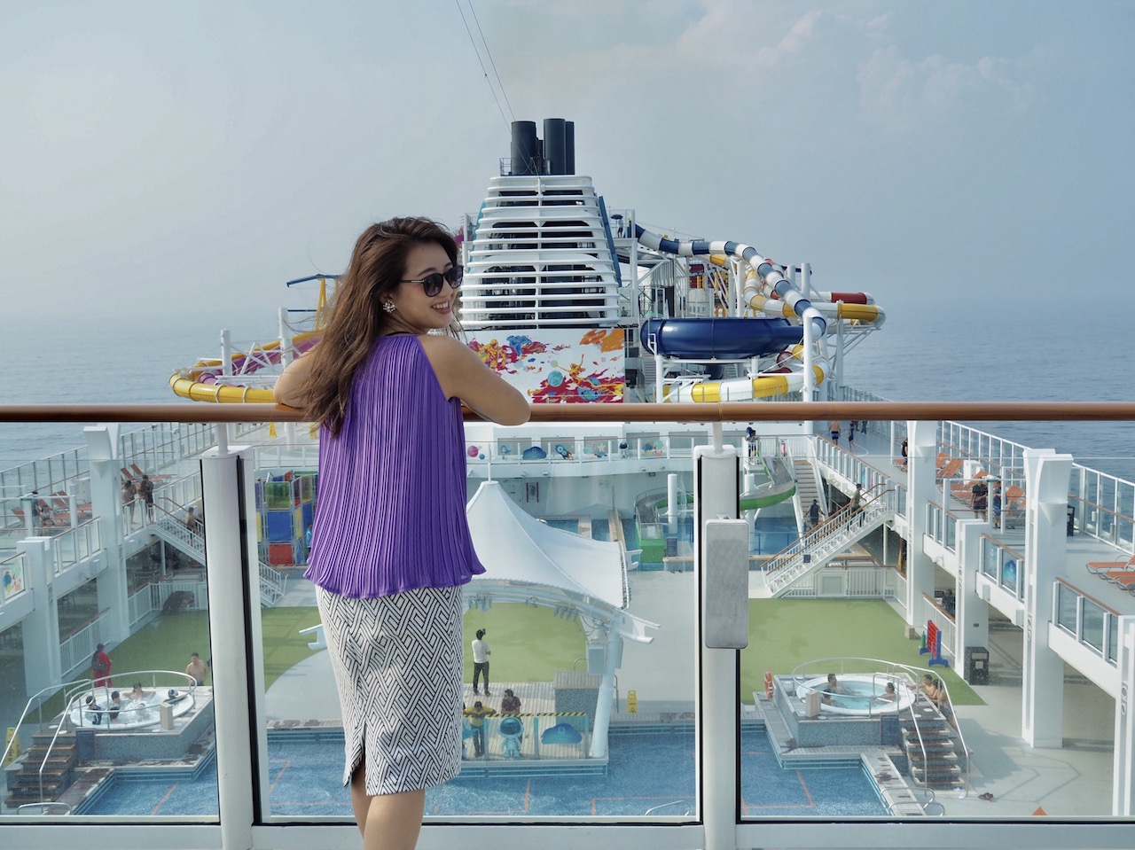 キャビンに荷物を置き、少し休憩した後はクルーズ船内のお散歩へ。船内には、プールやウォータースライダーなどのアクティビティ施設はもちろん、カジノ、ショップ、カフェ、バー、スパ施設…などなど、楽しい場所がたくさん!