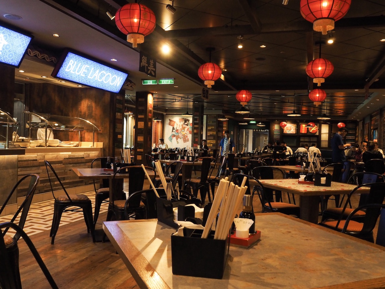 午前中、ランカウイのツアーを楽しんだ後は、13時に帰船。ランチは、東南アジアレストランの「ブルーラグーン」へ。アジアで長年の歴史を誇るゲンティンクルーズラインの特徴と言えるレストランで、ハイナンチキンライスやシンガポールラクサ、ナシゴレンなど、絶品の東南アジア料理を楽しめます。24時間営業で夜食も食べられるので、美味しすぎてついつい夜までハシゴしてしまいそう…!