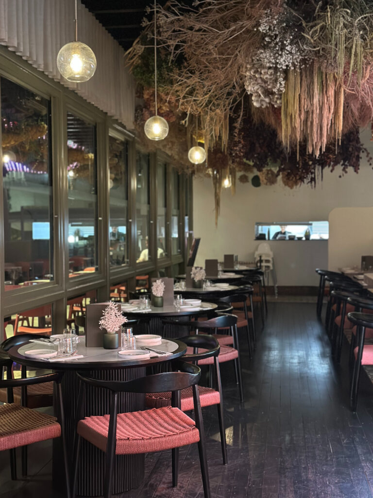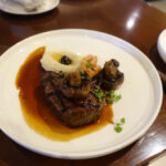 ワインに合うチーズやパンがあり、ワイン好きにはたまらない空間。お酒が飲めなくてもノンアルコールワインや美食を贅沢に楽しめるので、ぜひ訪れて欲しいレストランです。前菜の柿とブッラータは、フレッシュでクリーミーなチーズに、甘い柿がアクセントとなり間違いのない一品。フォカッチャはホイップされたフェタに、地元のハチミツをつけていただくとスイーツのよう。大ぶりな手長海老は肉厚で食べ応えがあります。帰国日にして、滞在中初となるビーフをいただいたのですが、アンガス牛は繊維のない柔らかい質のお肉で頬が落ちそうなくらいに美味しい…またオーストラリアに来てビーフを食べたい!そう思った瞬間でした。