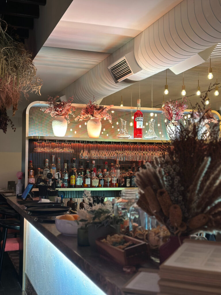 ピンクを基調としたオシャレな空間で、まずはイタリアンスタイルの前菜からシェアスタイルでスタート。さっぱりとしたビーフカルパッチョはサラダ感覚で、アランチーノはトマトの酸味とクリーミーなチーズのバランスが絶妙!エビやお肉のグリルでは、素材の味わいを存分に楽しめます。自家製ブレッドボウルに入ったユニークなリガトーニや、オレキエッテなどのパスタに、メインは皮がカリカリのポルケッタを。デザートはイタリアの代表的なデザート・ティラミス。とろけるような味わいで、締めまで大満足なディナーでした。