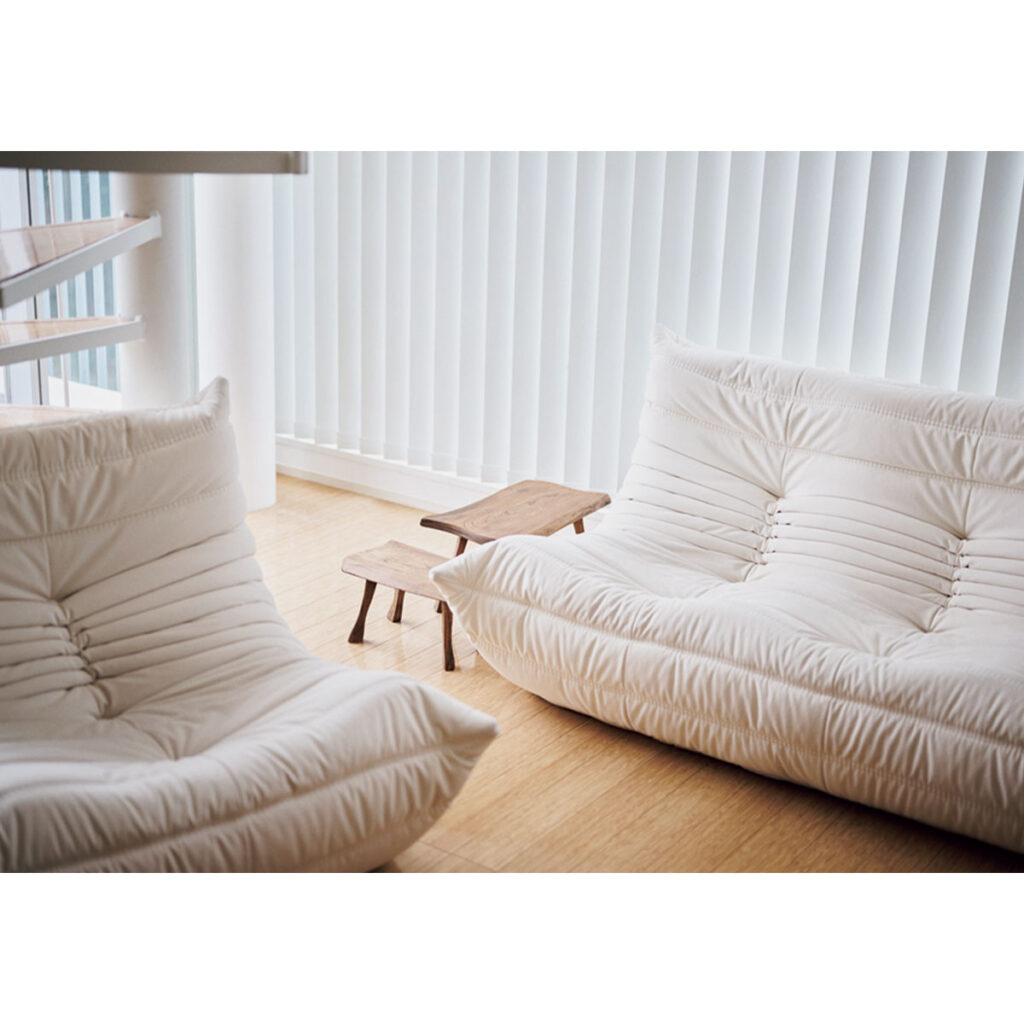 最近は引っ越したばかりということもあり、洋服より家具にお金をかけることが増えました。家の雰囲気に合うように、温かみのある色や素材で統一。リーン・ロゼのソファではいつも猫ちゃんズが仲良く寄り添って寝ています。